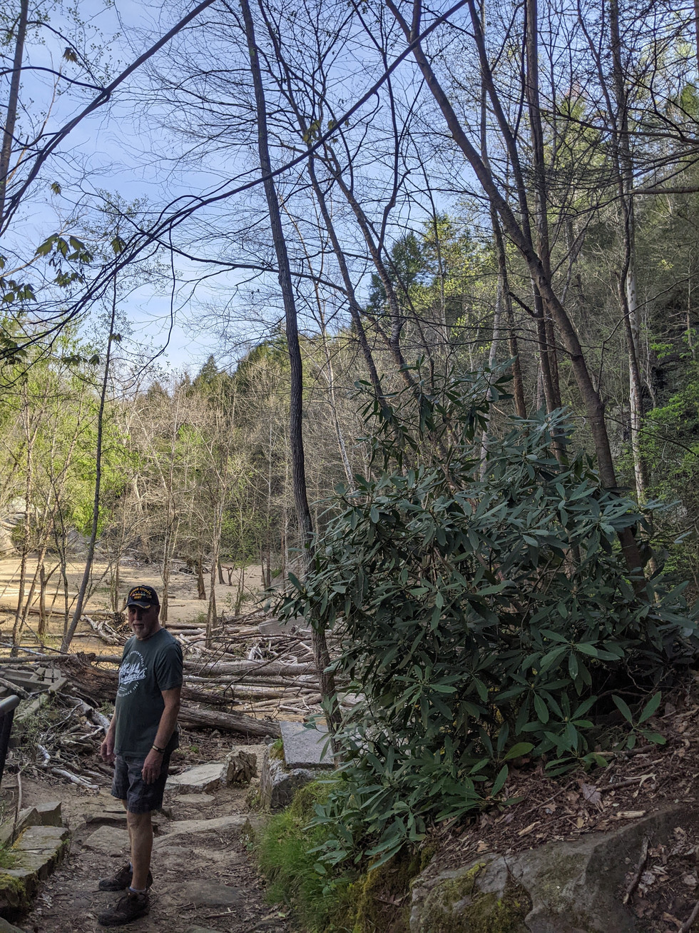 We have been dealing with spring wet weather and did get a day that was just right to see Cumberland Falls-it is in State park in KY. It was wonderful to get out in the fresh air and see the largest falls in this area of the US. Called the Niagara of the South, it didn't disappoint. This Waterfall has rainbows in the mist and on certain nights has a "Moonbow", bright moon light and in the mist you see a Moonbow, the colors are not as bright