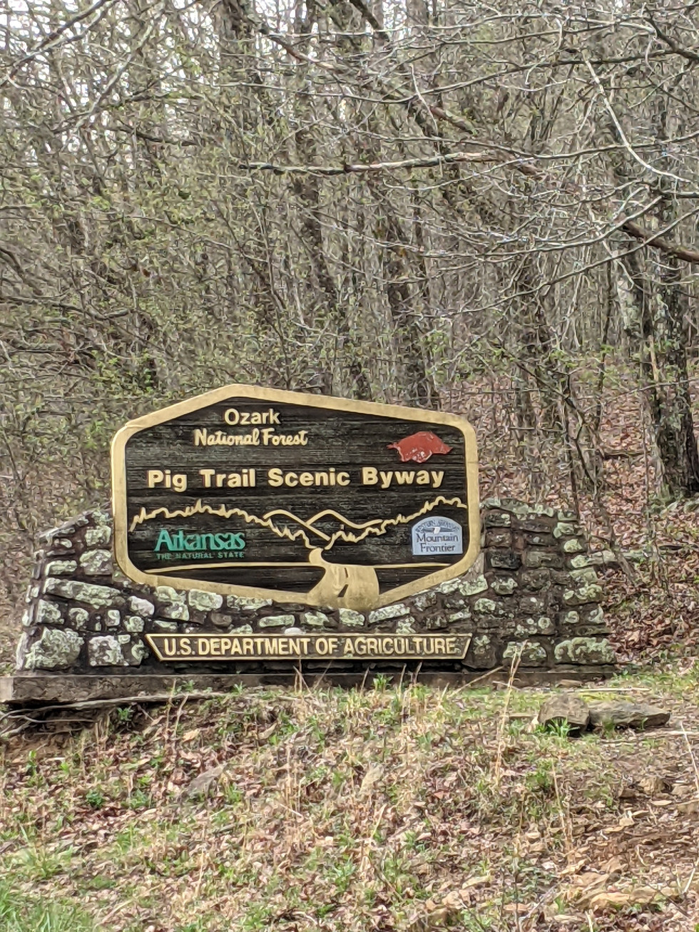 Pig Trail Scenic Byway-AR, took a nice hike to see the highest mountain in AR in the Ozarks. We really like it here and the Ozarks are kind of like "bluffs" a tick bigger but the hills and natural beauty is just wonderful.